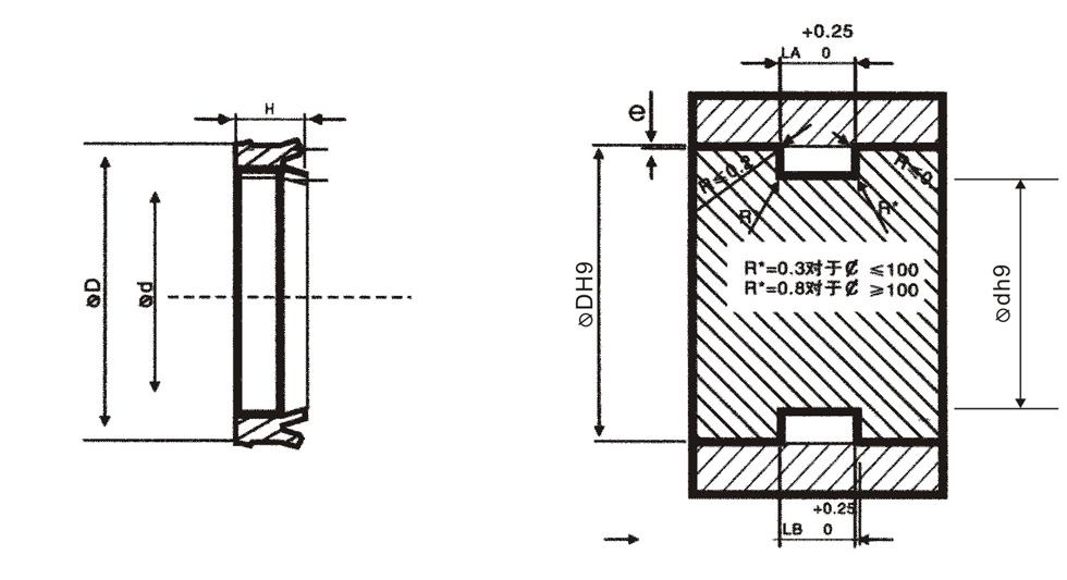 Operating pressure: ≤30Mpa; Operating temperature: -30~+110℃; Surface velocity: ≤0.8m/s. Mainly used as seals for piston holes on forging hydraulic presses, rubber vulcanizing machines, and various hydraulic cylinders or air cylinders with small cross-sectional requirements.