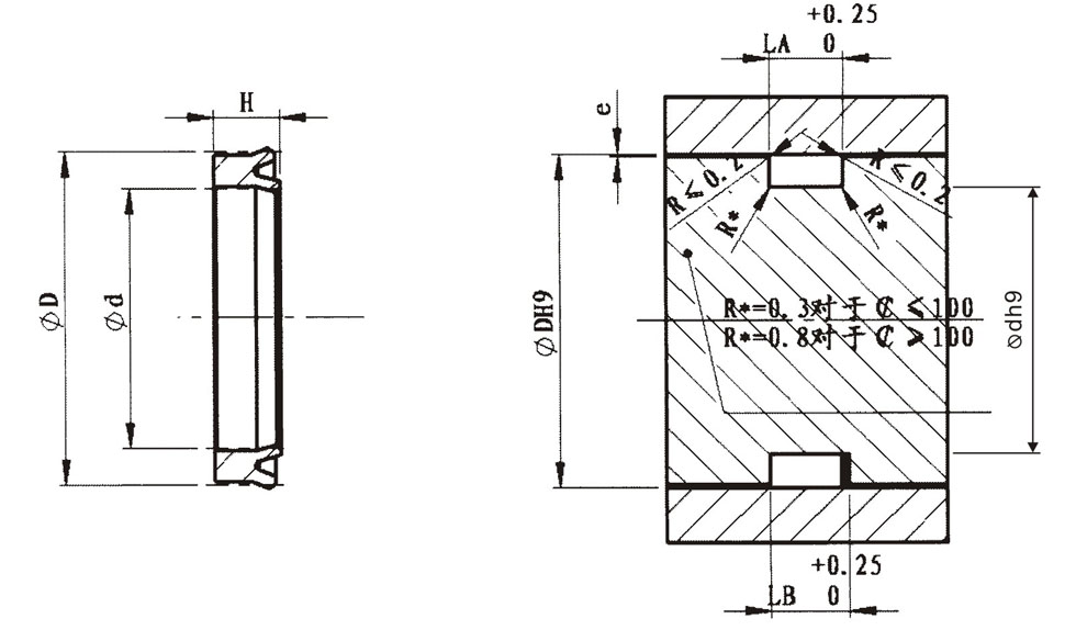◆ Can also be used in particularly low-temperature hydraulic oil applications Scope of application: Working pressure: ≤25Mpa Working temperature: -30~+100℃ Surface speed: ≤0.8m/s Hardness: 92A+2 Primarily used for piston seals on hydraulic machinery cylinders in the mobile machinery, outdoor machinery, and agricultural machinery industries.