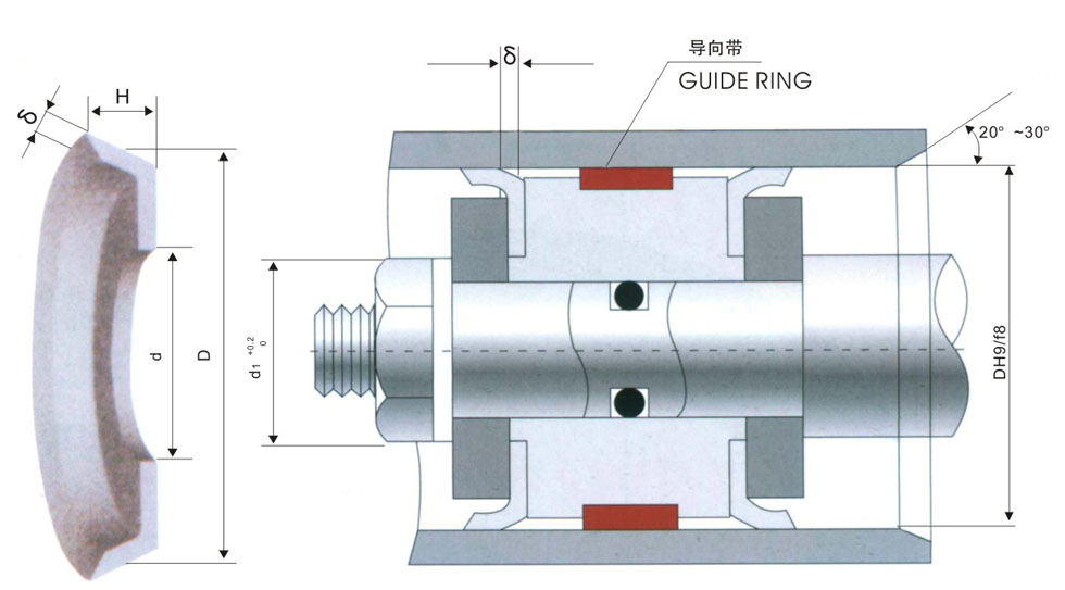 Material: nitrile rubber, polyurethane Product hardness: 70±5°A, 85±5°A Operating temperature: -40~+80°C Operating pressure: 1~32MPa Operating medium: liquid, gas Standard source: HG4-331-66G51-6