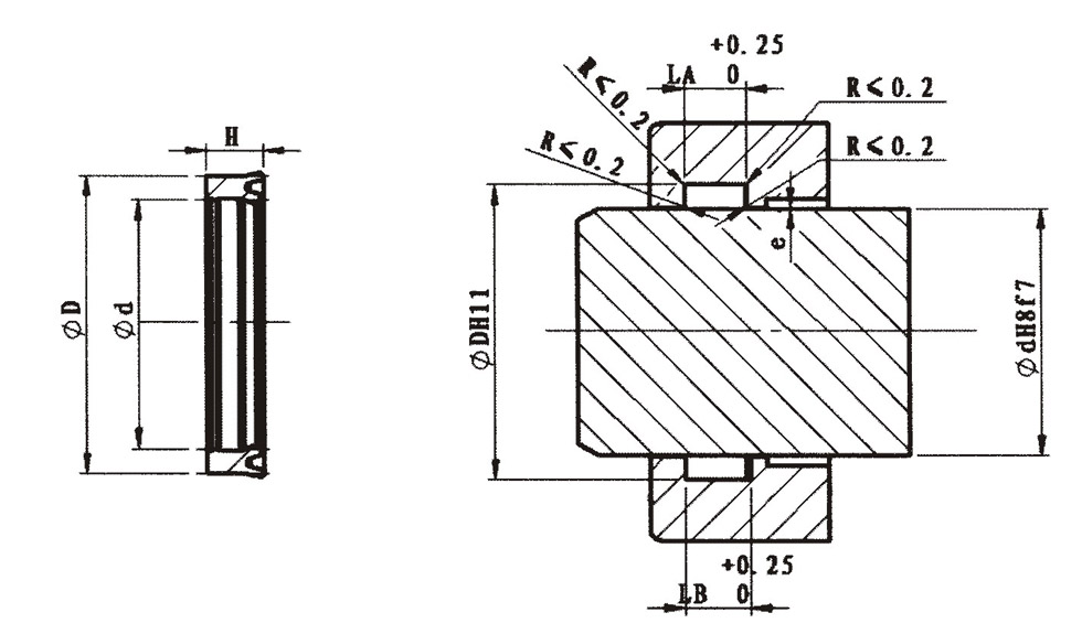 ◆ Easy to install Application range: Working pressure: ≤30Mpa Working temperature: -30~+110℃ Surface speed: ≤0.8m/s Mainly used for piston rod (for shaft use) sealing on hydraulic cylinders of forging hydraulic presses, rubber vulcanizing machines, agricultural machinery dump cylinders, and other general machinery hydraulic cylinders.