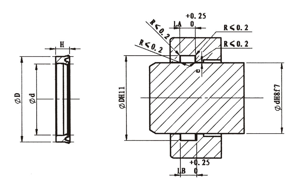 Working pressure: <25Mpa; working temperature: 30-+100℃; surface speed: <0.8m/s; hardness: 92A±2. Mainly used for sealing the piston rod and plunger in hydraulic cylinders for walking machinery, outdoor machinery, and agricultural machinery industries.