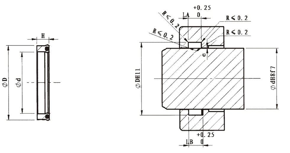 ◆Suitable for the most demanding working conditions Scope of application: Working pressure: ≤35Mpa Working temperature: -40~+100℃ (peaks up to 120℃) Surface speed: ≤0.5m/s When selecting seals for special diameters, it is best to choose those with the largest possible cross-section. Primarily used for sealing plungers, piston rods, air drills, hydraulic cylinders, forging presses, and hydraulic equipment for mobile equipment.