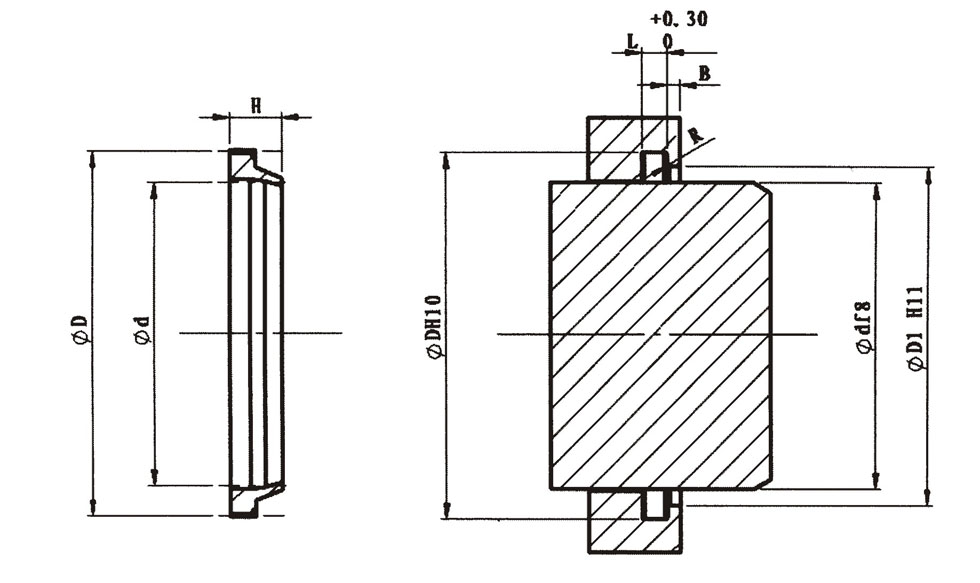 Application Range: Operating Temperature: -35~+100℃ Surface Speed: ≤2m/s Primarily used for dustproof sealing on heavy-duty mobile machinery. Installation: The FB type dust seal has a slightly oversized outer diameter, which ensures the most reliable tight fit when installed in the DH8 groove. Contact between the lip of the dust seal and the piston rod hole or other connecting parts should be avoided.