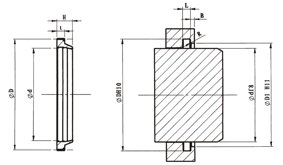 Application range: Operating temperature: -35~+100℃ Surface speed: ≤2m/s Primarily used for dustproof sealing on heavy-duty mobile machinery. Installation: The DKI type dust seal has a slightly oversized outer diameter, ensuring the most reliable tight fit when installed in the DH8 groove. Contact between the lip of the dust seal and the piston rod hole or other connecting parts should be avoided.