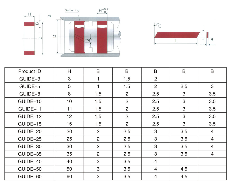 Usage: This standard guide ring canused in all kinds of hydraulic andPneumatic cylinders for guide orback up for the piston or rod.,Material: PTFE+ Bronze