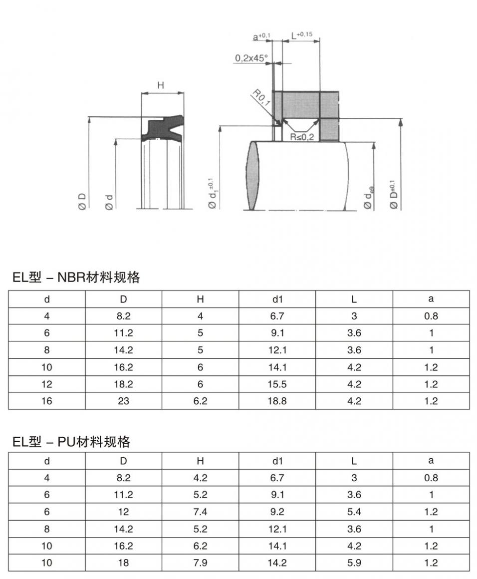 The EL type pneumatic piston rod seal/dust seal with dual functions is specifically designed for small cylinders and valves. Compared to other traditional seals, it offers the following advantages: Main advantages: