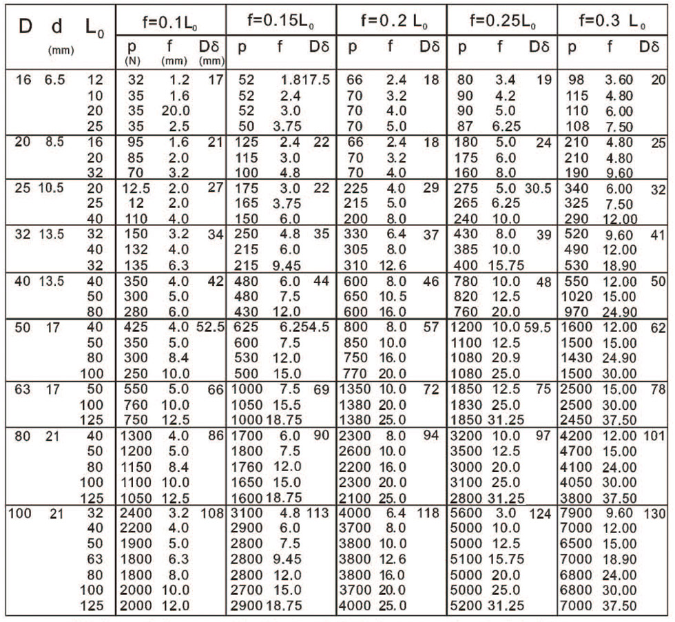 PUR exhibits a pressure-bearing capacity 6 to 7 times higher than that of ordinary rubber, coupled with its excellent elasticity and mechanical strength. In sheet metal forming, it can be widely used as an elastic element and cushion for ejection and unloading. Currently, as a component of PUR unloading springs, it has been serialized with stamping machinery and has gradually developed into a standardized series of products. Their basic shape is shown in the figure. When in use, they undergo deformation under external force. The amount of pressure they can withstand is related to the rubber hardness and product size. Taking the commonly used PUR hollow cylindrical spring pad in Europe as an example, its pressure-bearing capacity and deformation data are listed.